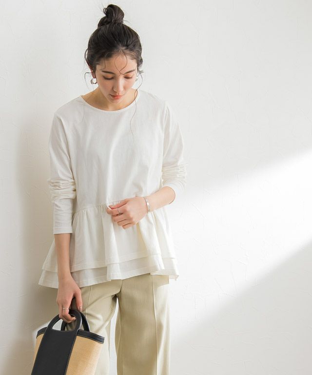 大人フェミニンスタイルに“フリルデザインTシャツ”