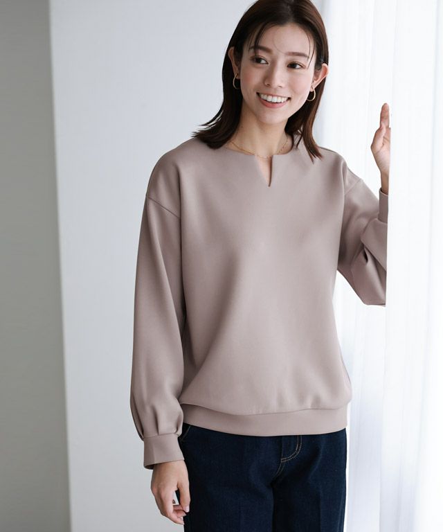 ダンボール素材が大人っぽく決まる、きれいめカジュアルなプルオーバー。シンプルながらも立体的なシルエットでこなれた大人のラフスタイルに導きます。デコルテ周りをきれいに見せてくれるキーネックデザインで抜け感をプラスします。