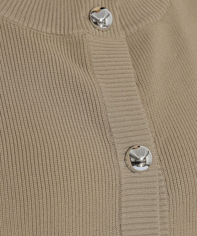 フロントに施したBIGボタンがコーデのアクセントになるニットベスト。ノースリーブデザインが軽やかさと、抜け感を演出します。程よく短めの着丈が今っぽい印象に。