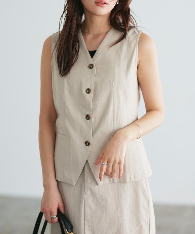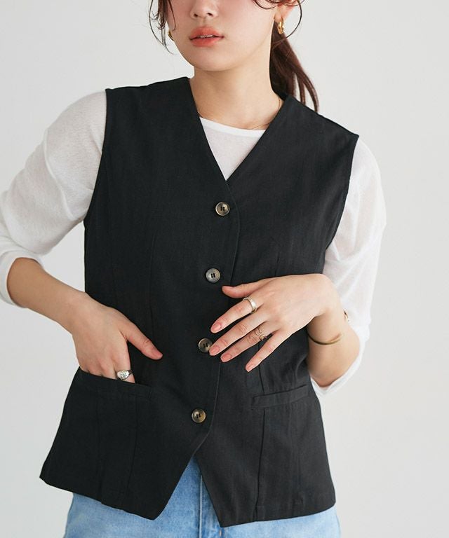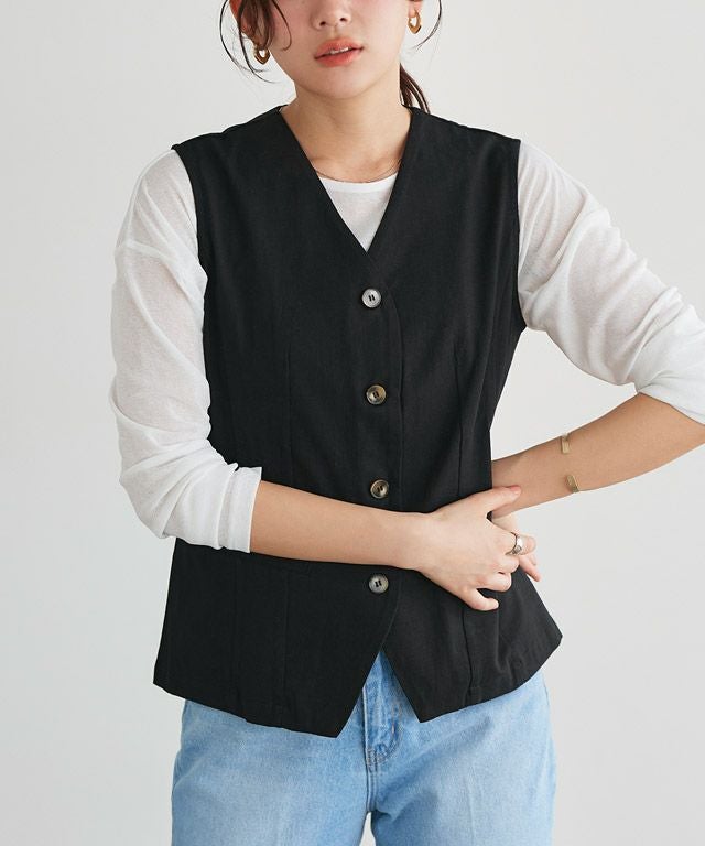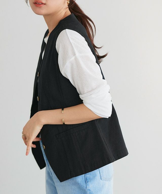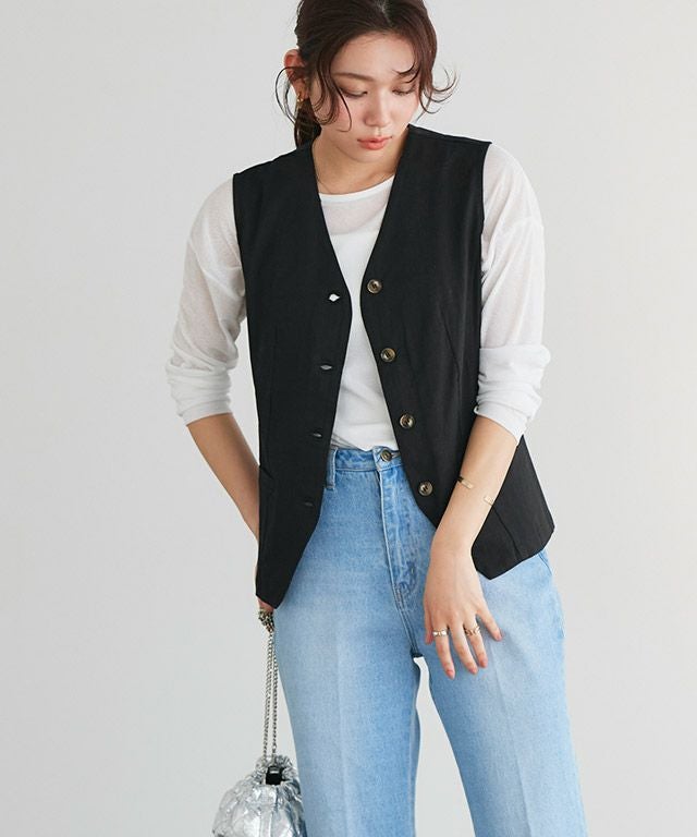 コットン素材で程よくラフな雰囲気漂うベスト。涼し気な素材感が季節の変わり目に活躍してくれます。
