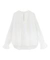 胸元のピンタックがシャープな印象を持たせつつ、キャンディースリーブで女性らしさ溢れるデザイン。裾のラウンドカットでこなれた雰囲気に導きます。ボリューム感のあるシルエットの中に、首元に深めに入ったスリットで大人の抜け感をプラス。細部までこだわりの詰まったデザインブラウスです。
