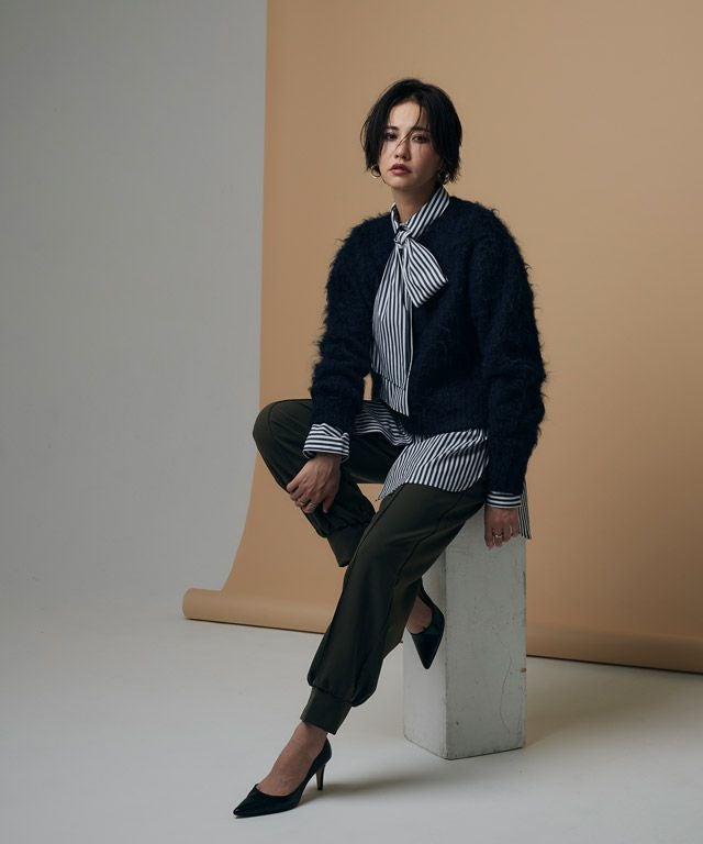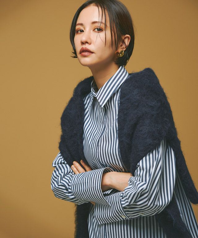 久々にストライプを選びました。長めのリボンタイが可愛すぎず、重ね着の時もポイントになるのでよかったです。