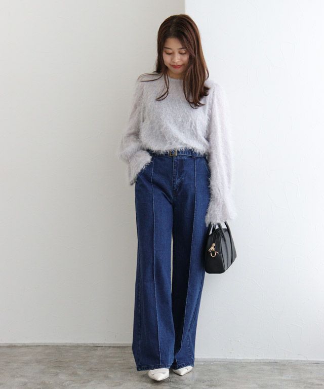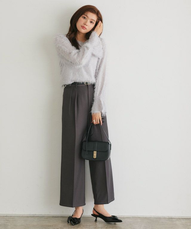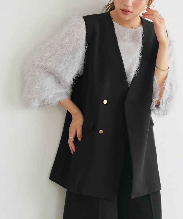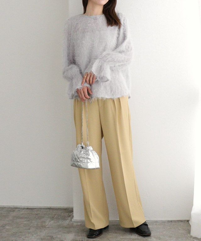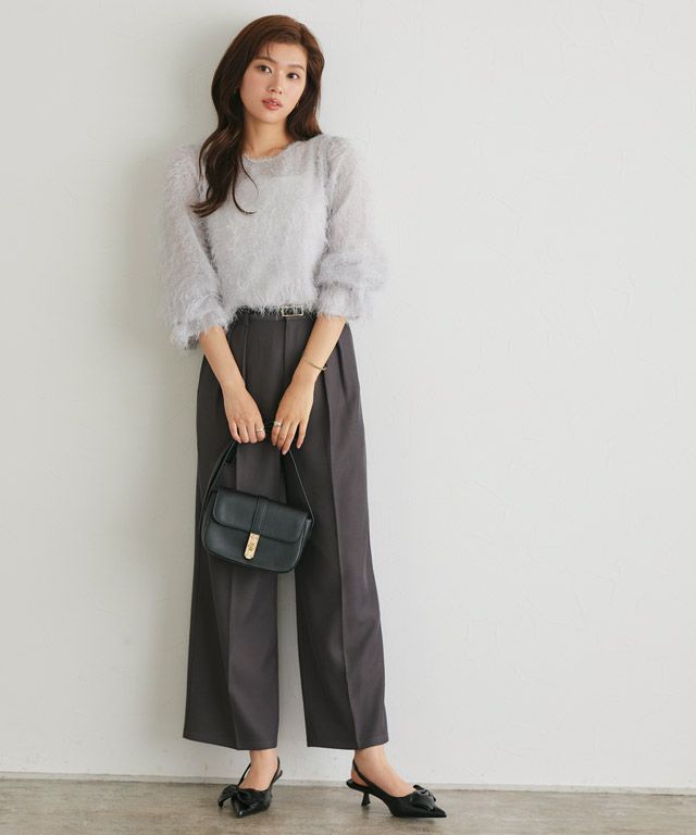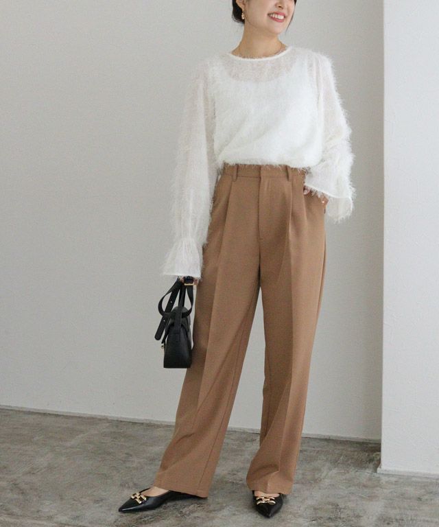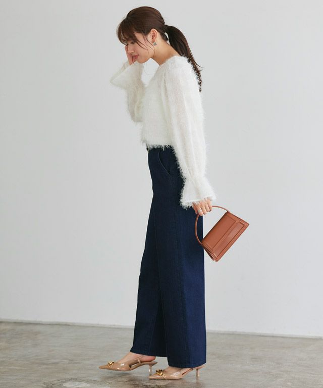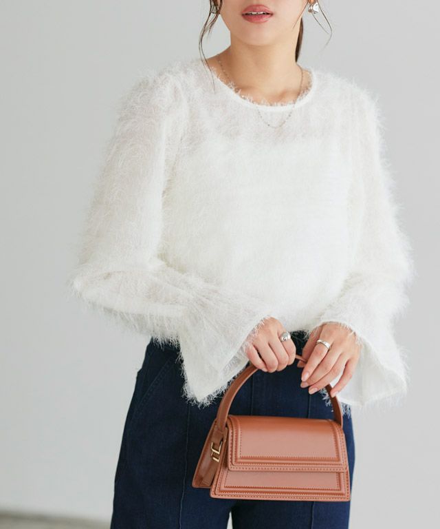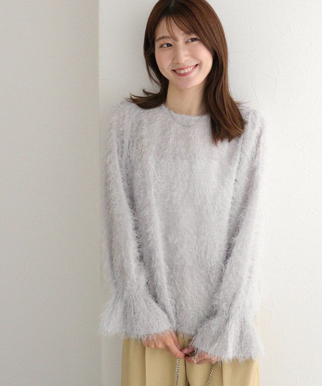 毛足の長いフェザーがラグジュアリーな印象のブラウス。透け感のある軽い素材ですがシーズンムードをプラスしてくれ、ふんわりとした質感で華やかなアクセントに。