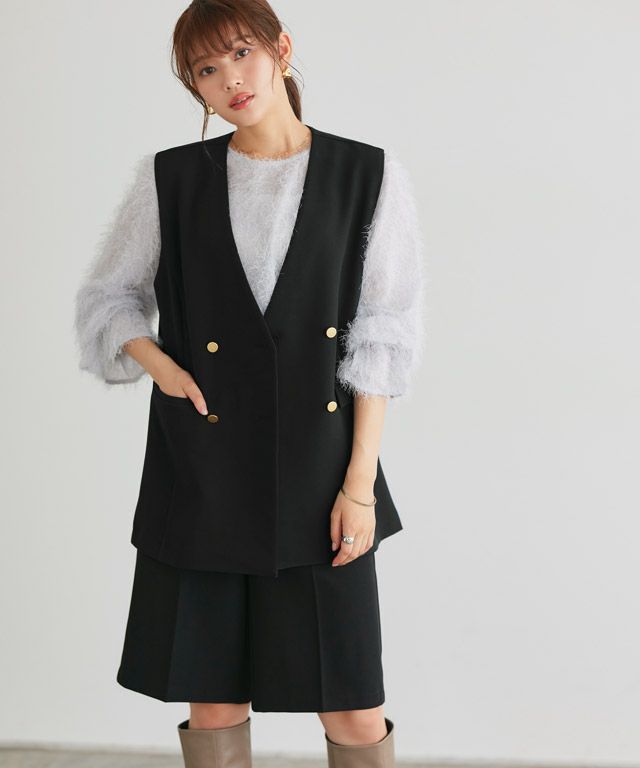 ラグジュアリーなムードを演出“フェザーキャンディスリーブブラウス”
