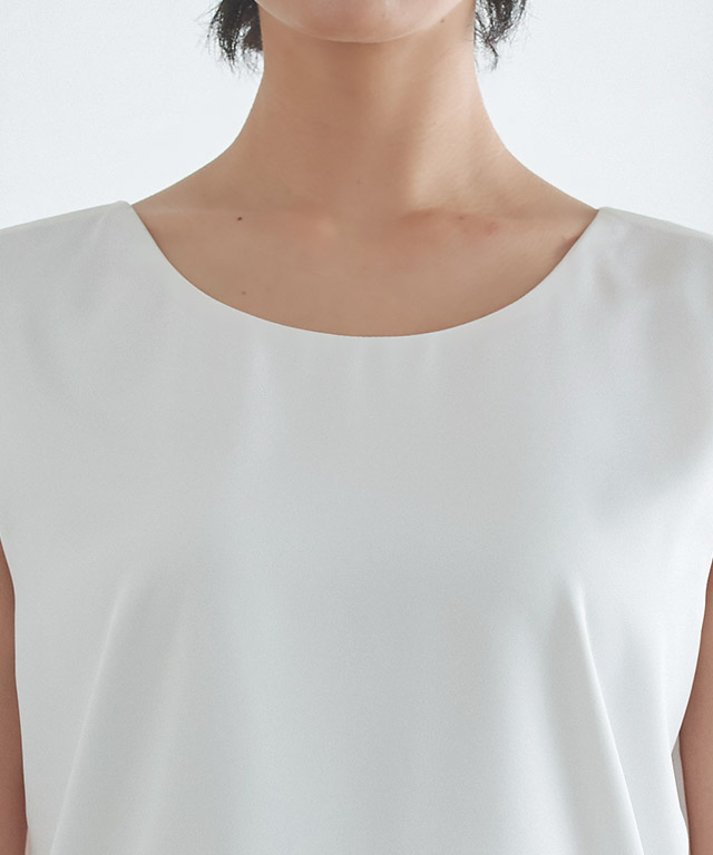 程よくすっきりとしたサイズ感で、スタイルアップ効果をプラス。キレイめな印象ながら程良く抜け感のあるVネックと、スタイリングにカジュアル感をプラスすするクルーネックの、前後2wayデザイン。シンプルなボトムスと合わせるだけで華やかさをプラスしてくれるアイテムです。同素材パンツとのセットアップもおすすめです。