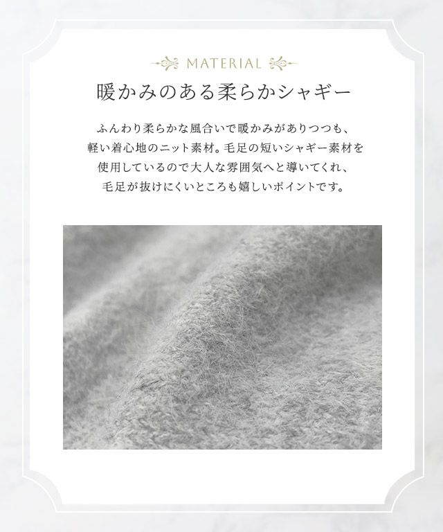 他の画像を見る #SALE 販売期間 2025/12/02 17:00 〜 \WINTER SALE!20%OFF/ ドッキングショートシャギーニット ¥ 4,290 税込 ¥ 3,432 税込 お気に入りに登録する