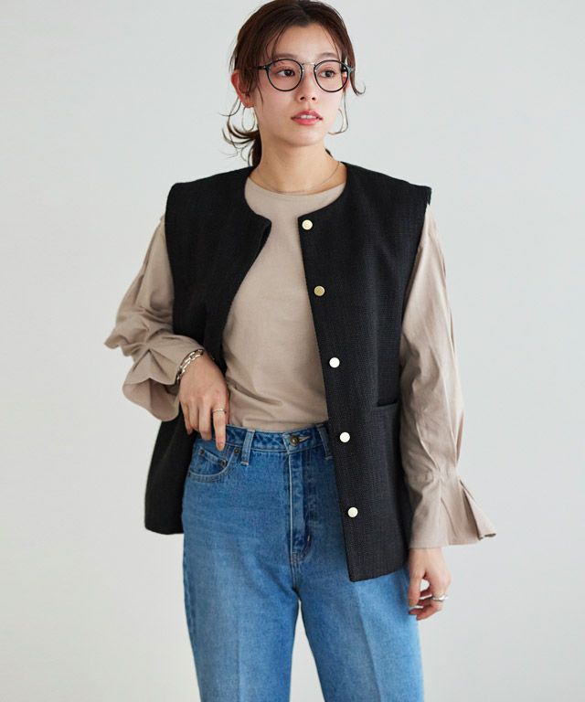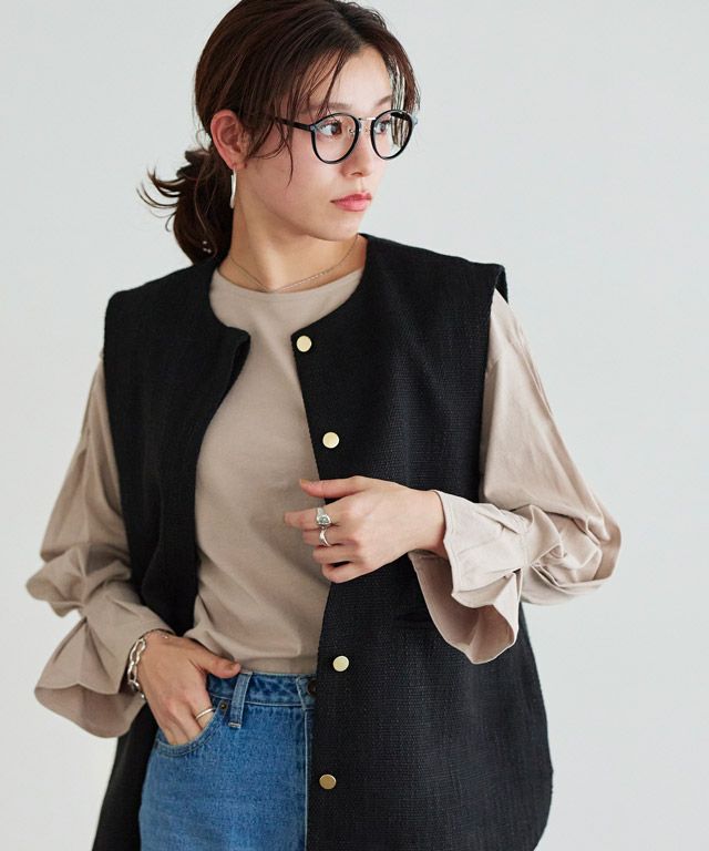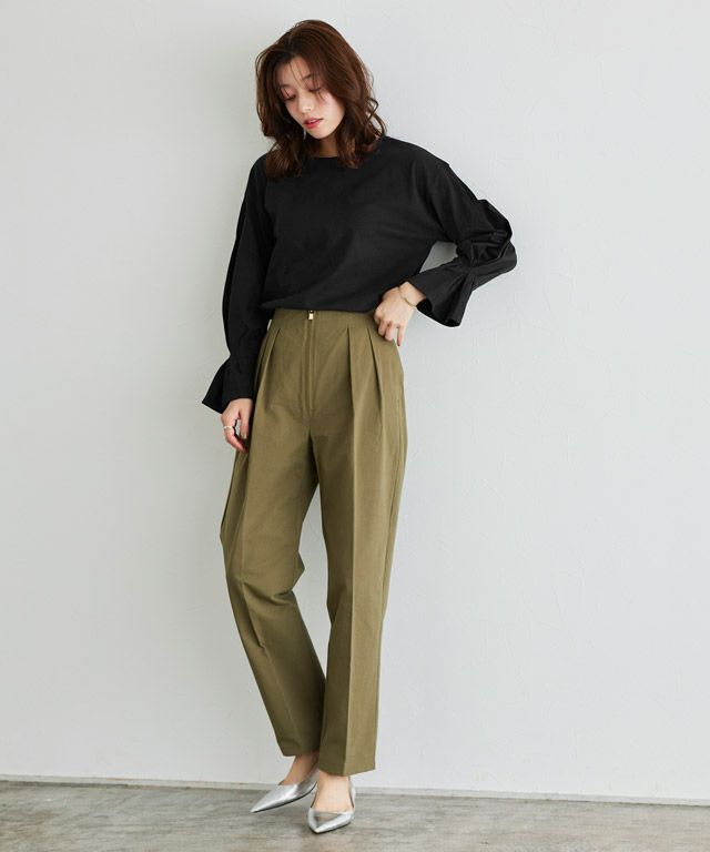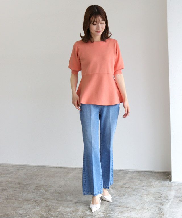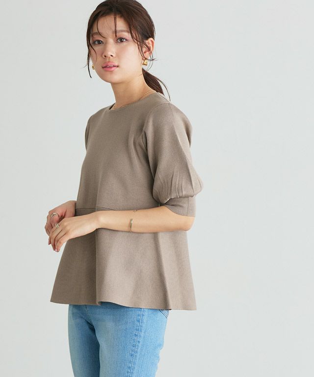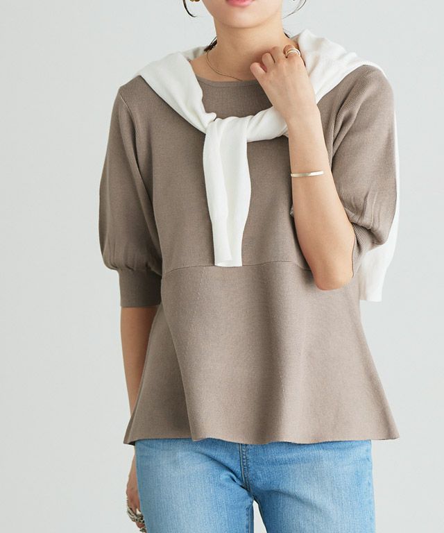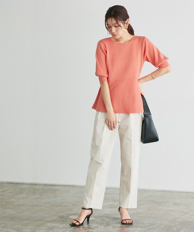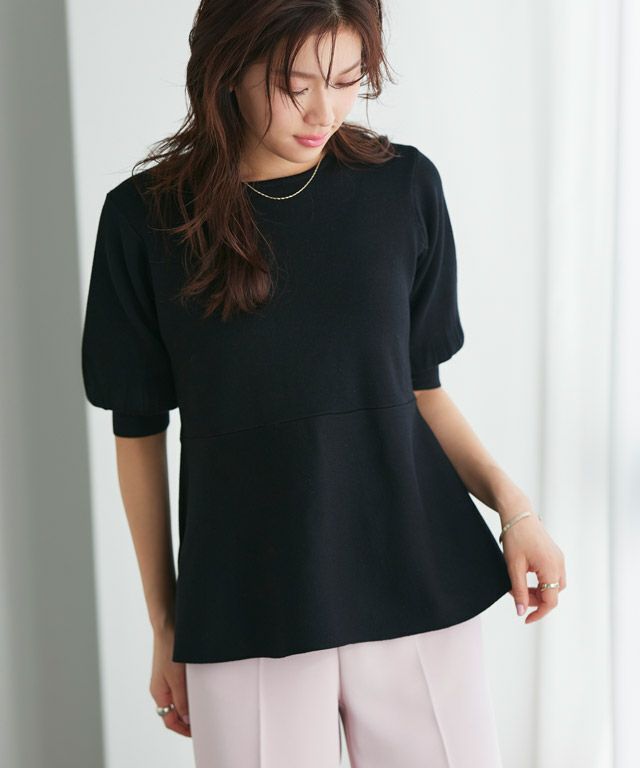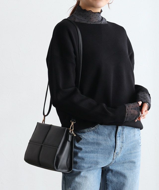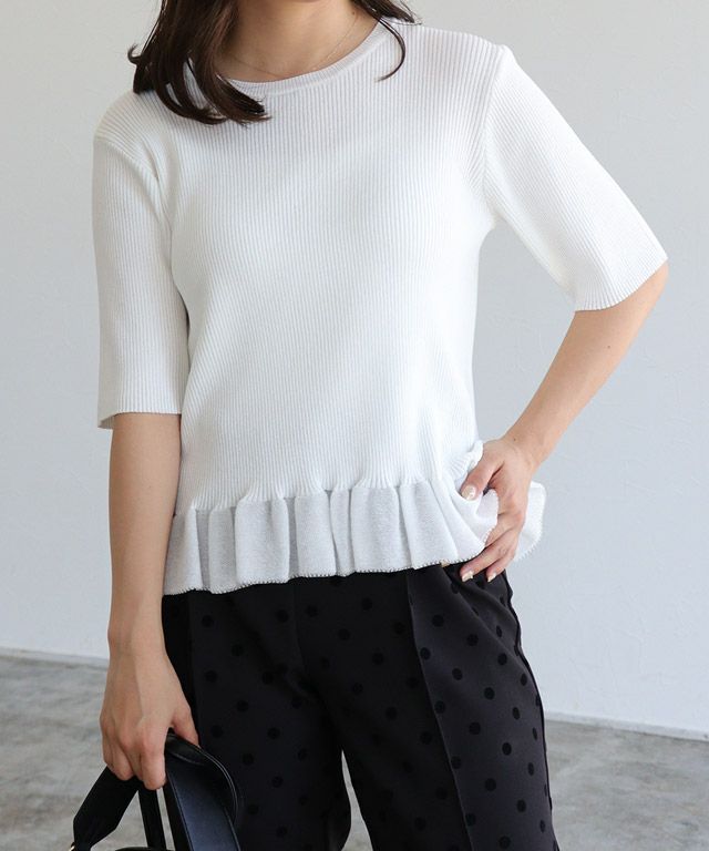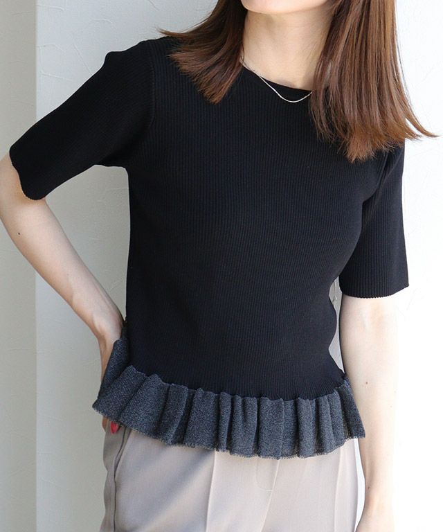 選べるネック綿混リブニット 【Pierrot】
