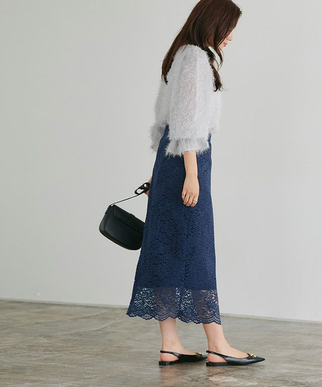 Iラインシルエットはレースアイテムでもフェミニンになり過ぎずすっきりと見えるので、コーデを格上げします。スリットを入れることで足さばきがしやすいデザインに仕上げました。