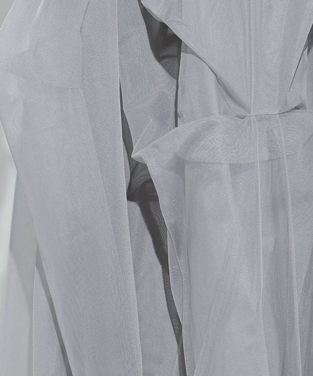 エアリーなチュール素材がレディな印象に導いてくれます。シャカシャカ素材の裏地が透けにくいのもポイントです。