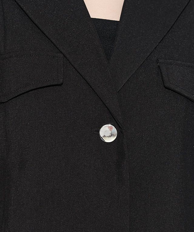 肩に施したパフデザインがレディ感を引き立てる一枚。程よく首元の開いたテーラードカラーがスタイリッシュに仕上げます。シルバーボタンがコーデのアクセントに。