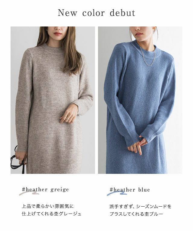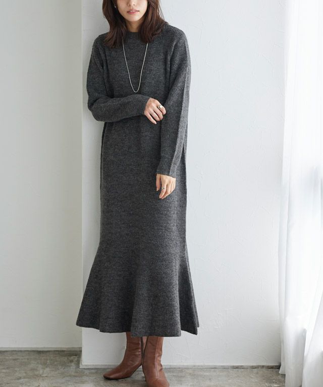 女性らしさ漂う“ふんわりウォッシャブル裾切り替えプチハイネックニットワンピース”