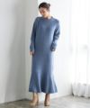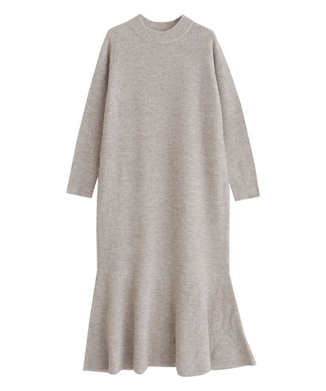 ふんわりウォッシャブル裾切り替えプチハイネックニットワンピース
