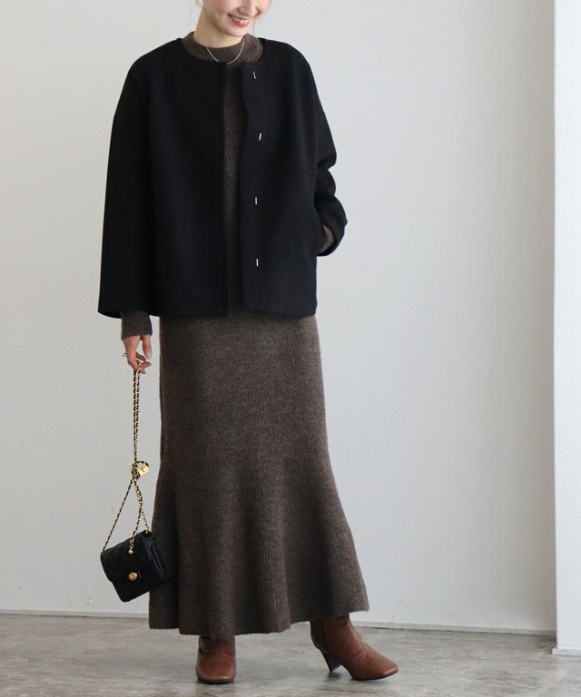 ふんわり柔らかな風合いで温かみがありつつも、軽い着心地のニット素材。木目のように、濃い色と薄い色の糸が混ざった杢カラーが、お洒落な雰囲気を漂わせます。ご自宅でお手入れができ、洗濯機での洗濯が可能なところも嬉しいポイントです。
