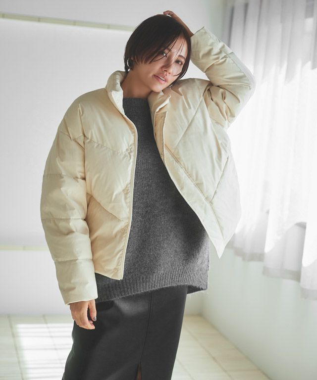 アルパカの細い繊維は空気を含んだように軽い素材です。使用することによって柔らかくふんわりとした質感になるとても肌触りの良いニットに仕上げました。ふっくらとボリュームがありながらも、軽い着心地と暖かさを兼ね備えた素材です。