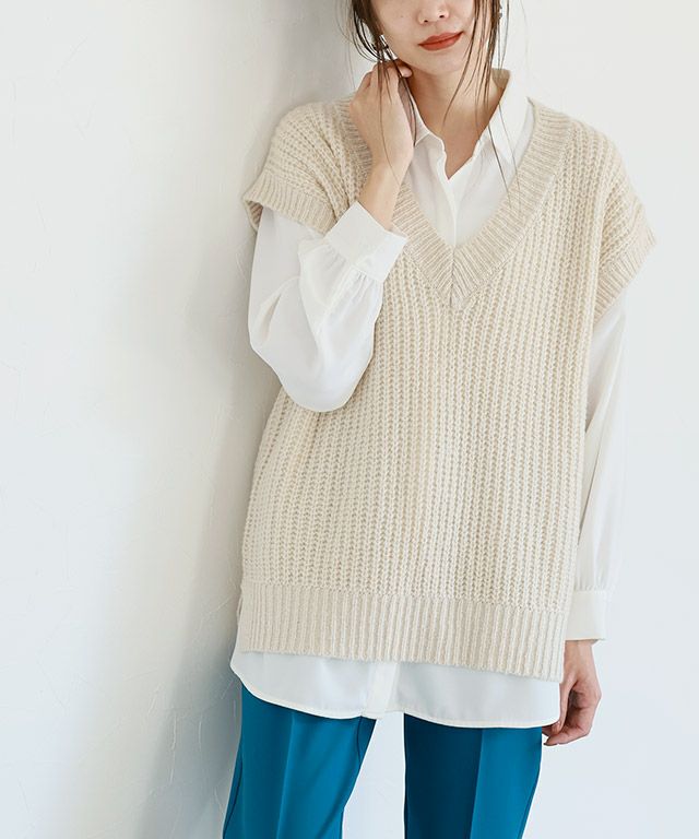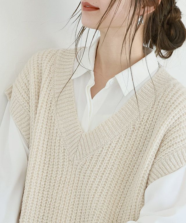 他の画像を見る #SALE 販売期間 2025/11/04 17:00 〜 2025/11/11 16:59 \在庫処分セール!50%OFF/ モヘアタッチVネックニットベスト ¥ 3,290 税込 ¥ 1,645 税込 お気に入りに登録する