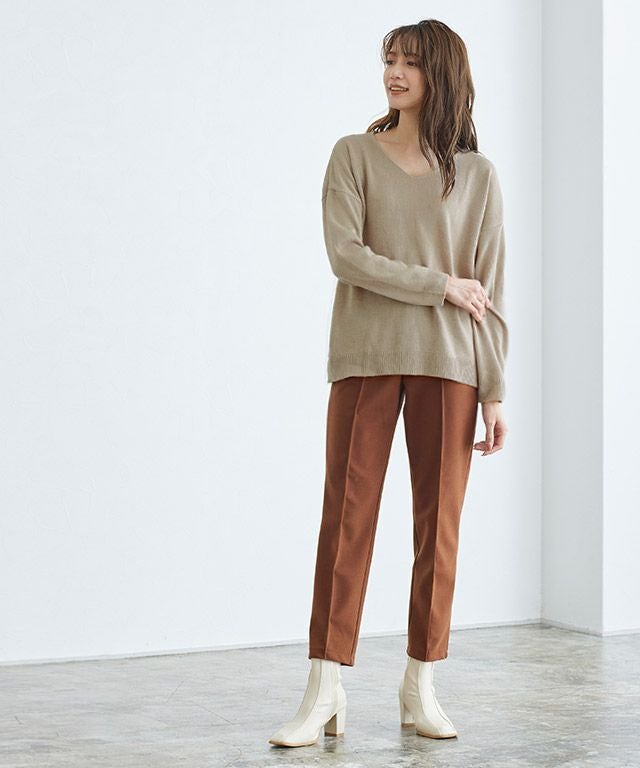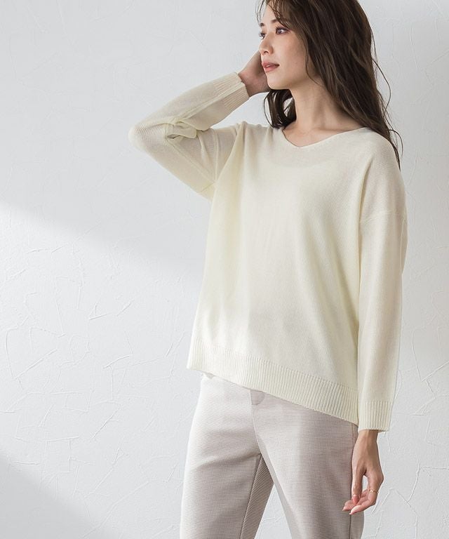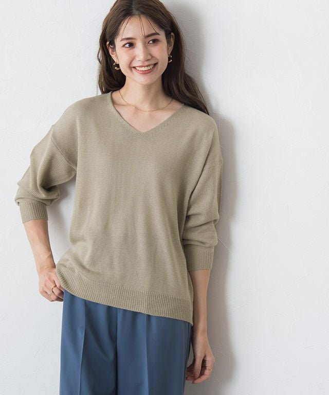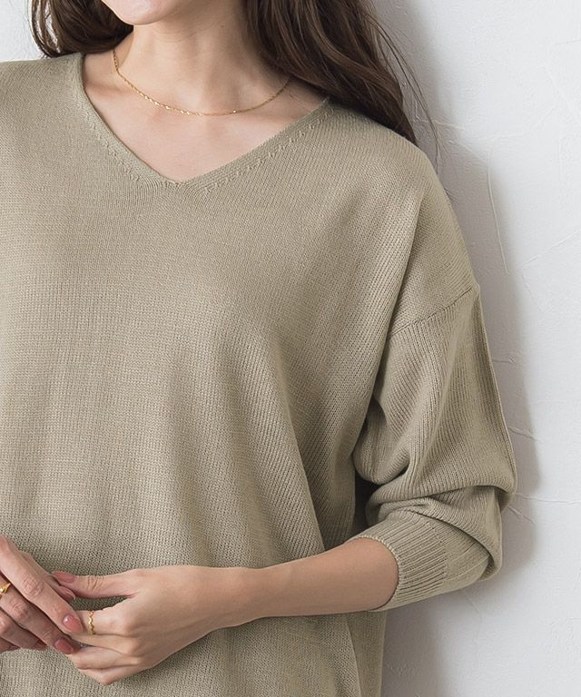 シンプルながらも一枚でサマ見え“Vネックオーバーサイズニット”