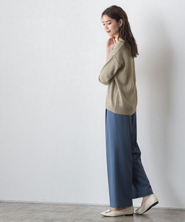 ドロップショルダーで程よくゆとりのあるシルエットが、シンプルながらも一枚でさまになるデザイン。深すぎず程よく開いた首元は抜け感があり、女性らしい印象に◎カジュアルからきれいめまで、幅広いコーディネートをお楽しみいただけます。