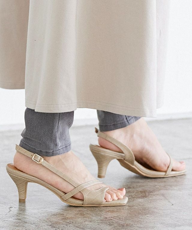 存在感のある足元へ“アシンメトリーストラップ型押しサンダル”