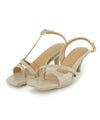 トング部分とアシンメトリーデザイン、スクエアトゥが大人らしい洗練された雰囲気に仕上げます。ローヒールで安定感があるのも嬉しいポイント。