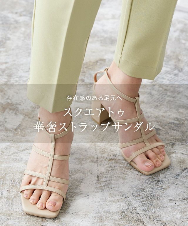 存在感のある足元へ“スクエアトゥ華奢ストラップサンダル”