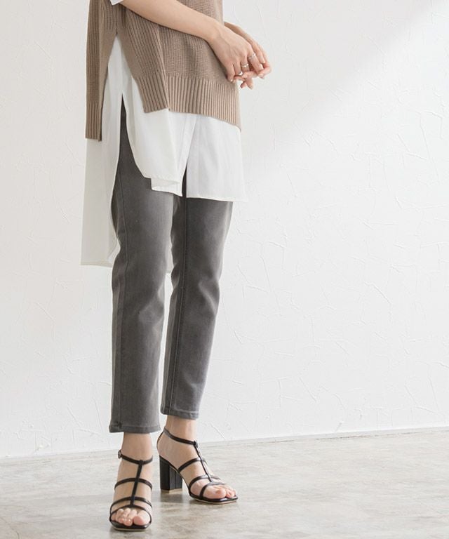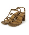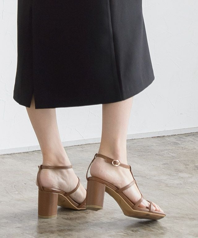 スクエアトゥとアッパー部分の華奢なストラップが大人のこなれた雰囲気を漂わせる一足。チャンキーヒールは安定感があり、歩きやすいのも嬉しいポイントです。