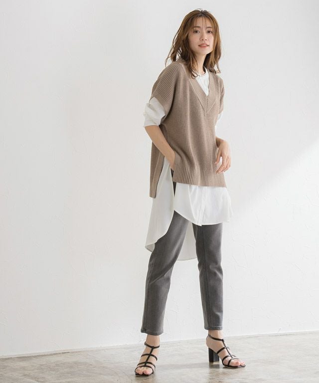 また、ニット製品は生産の過程上「生地を織る際の糸の継ぎ目」繊維の「混紡」、プレス加工、製品洗い加工によって形やサイズ(5cm前後)に誤差が生じる場合がございますが品質上の問題はございません。