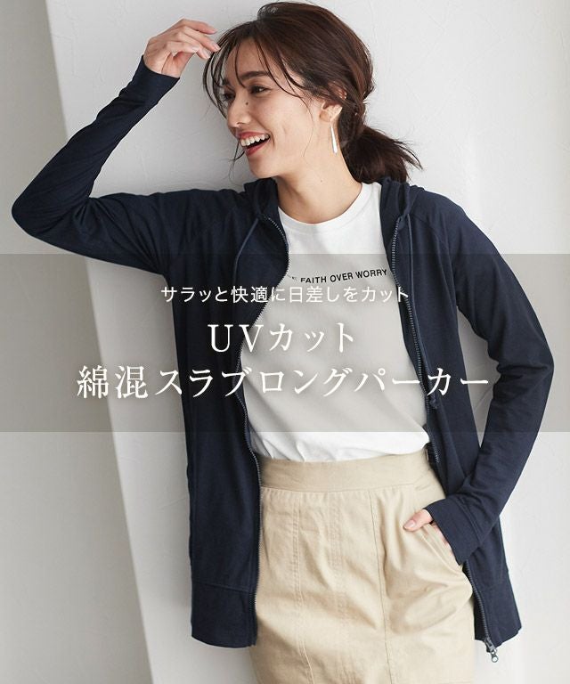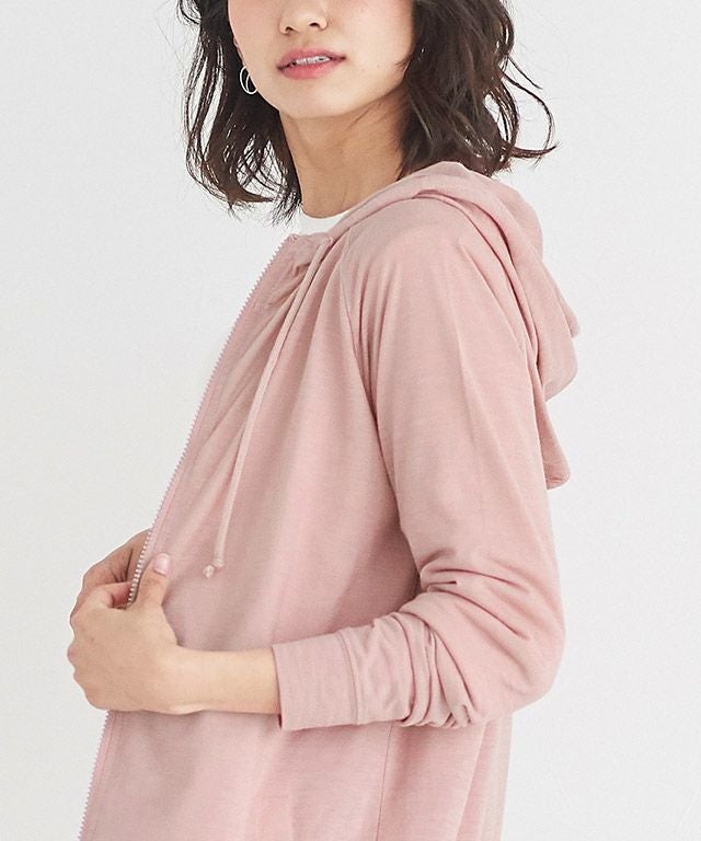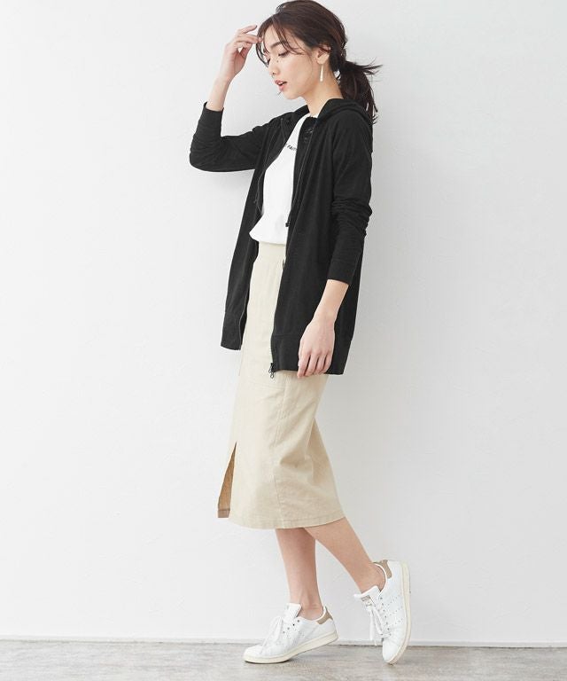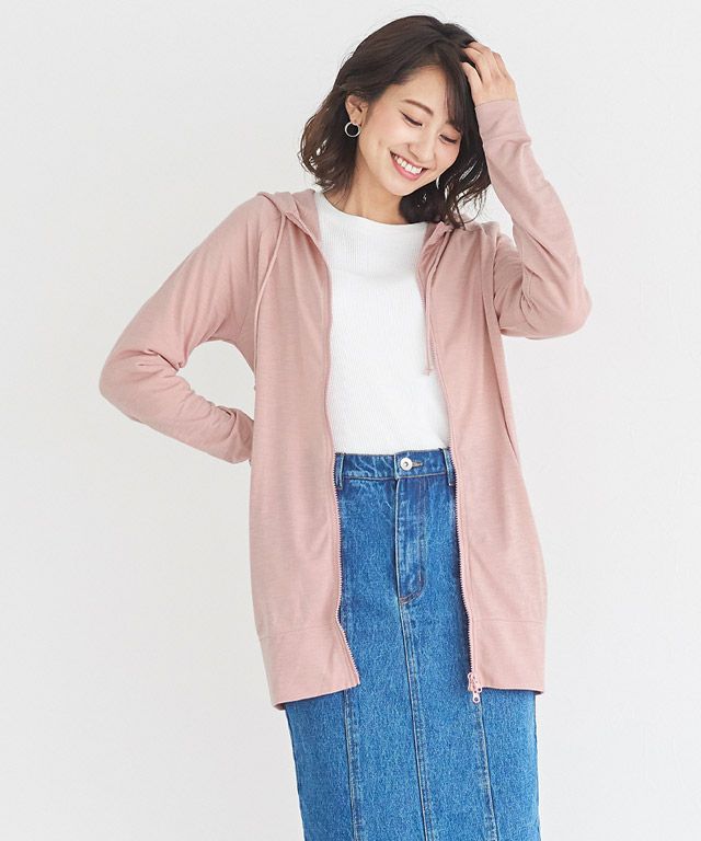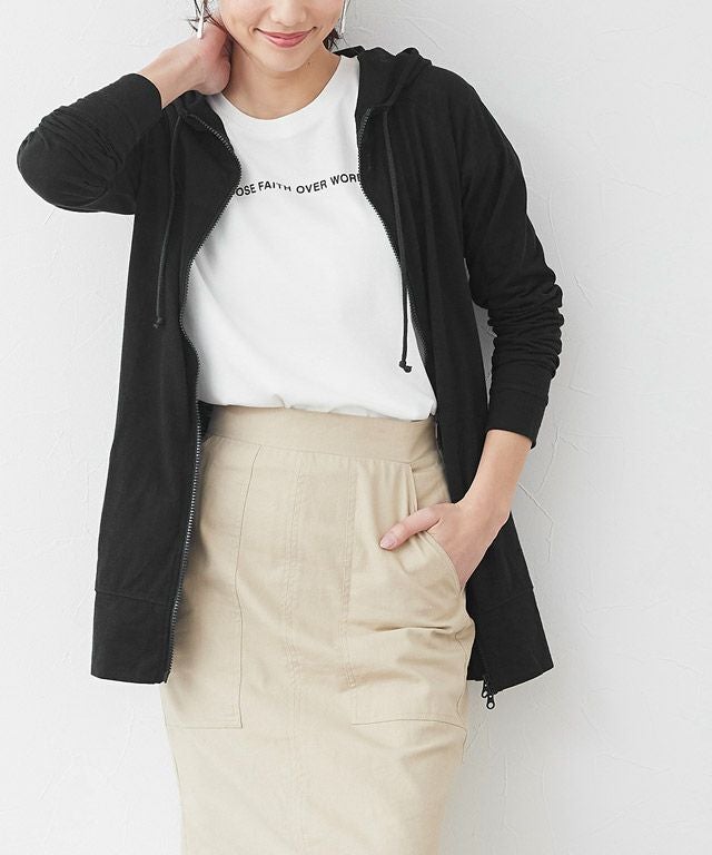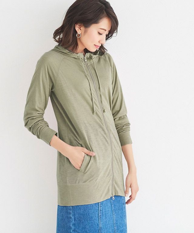 ライトな素材感のジップパーカーは、Tシャツ感覚で羽織れる薄さが◎