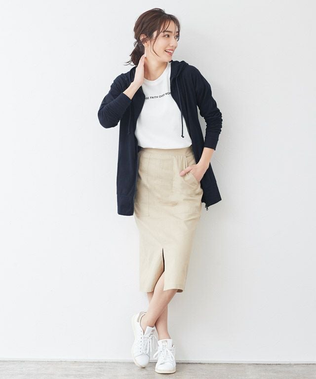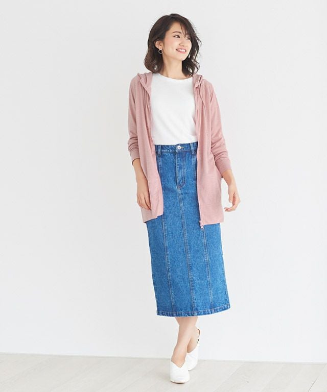 腰周りやお腹周りなど、気になるパーツがカバーできる優秀な丈。