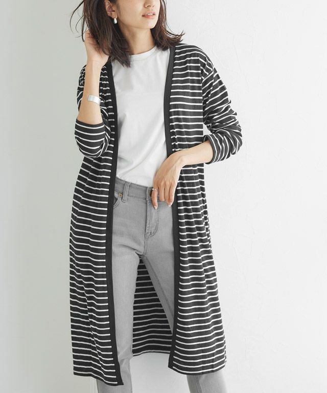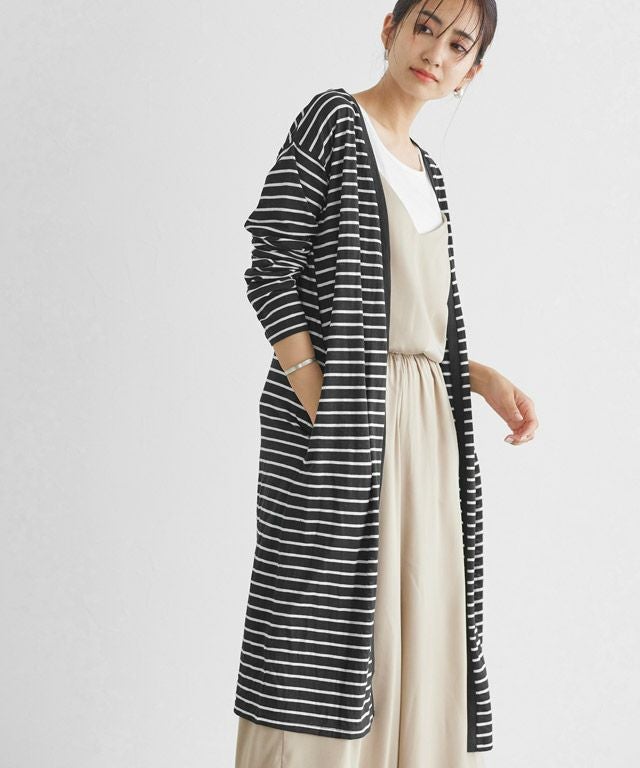 太さが異なるスラブ糸を使用し、表情豊かに仕上げたロングカーデは綿混素材を使用しているので、さらっと肌触りが良く快適な着心地◎