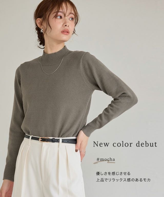 ゆとりを持たせたサイズ感が体のラインを拾いにくく、シンプルなデザインですが少しルーズでこなれた雰囲気に仕上げてくれます。首に沿ったハイネックデザインが上品ですっきり見えし、インナーとしても使いやすい一枚に。