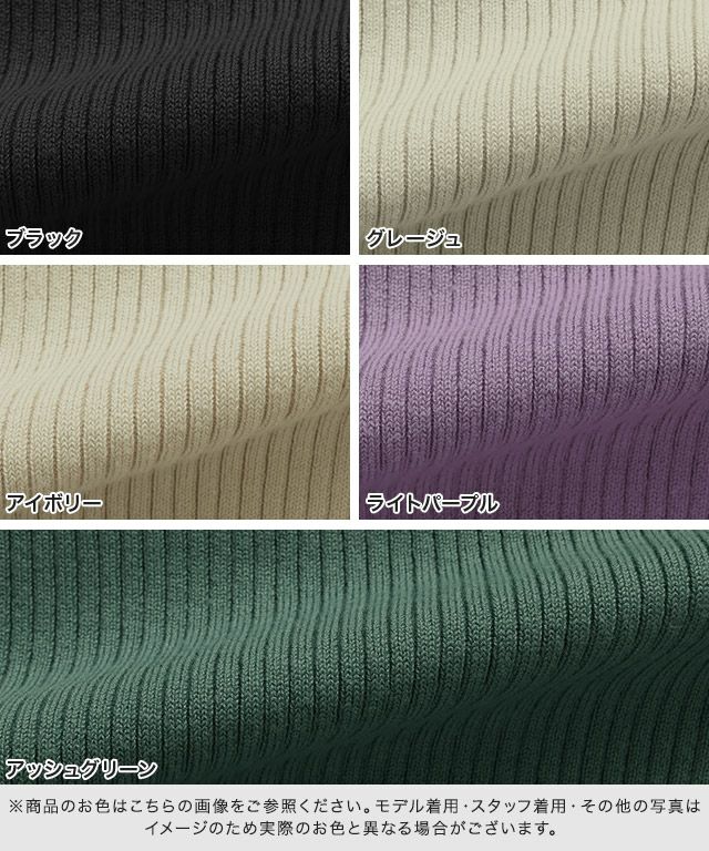 また、ニット製品は生産の過程上「生地を織る際の糸の継ぎ目」繊維の「混紡」、プレス加工、製品洗い加工によって形やサイズ(5cm前後)に誤差が生じる場合がございますが品質上の問題はございません。