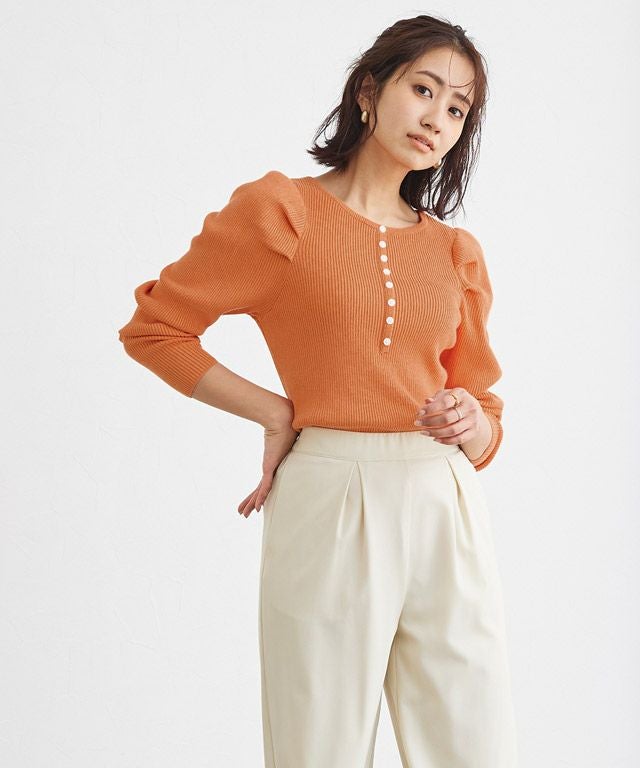 一枚でトレンド感漂う“ボリュームスリーブリブニット”