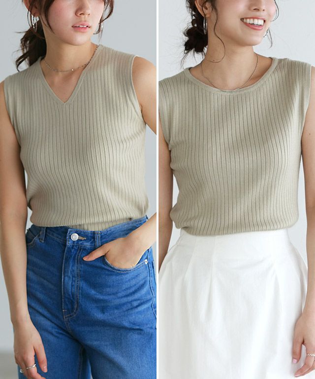 美シルエットで着回し万能“シルクタッチウォッシャブルノースリーブリブニット”