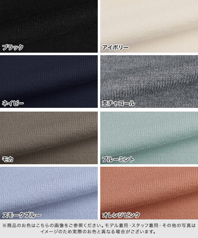 また、ニット製品は生産の過程上「生地を織る際の糸の継ぎ目」繊維の「混紡」、プレス加工、製品洗い加工によって形やサイズ(5cm前後)に誤差が生じる場合がございますが品質上の問題はございません。