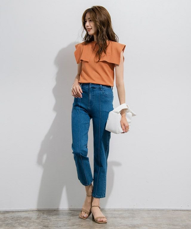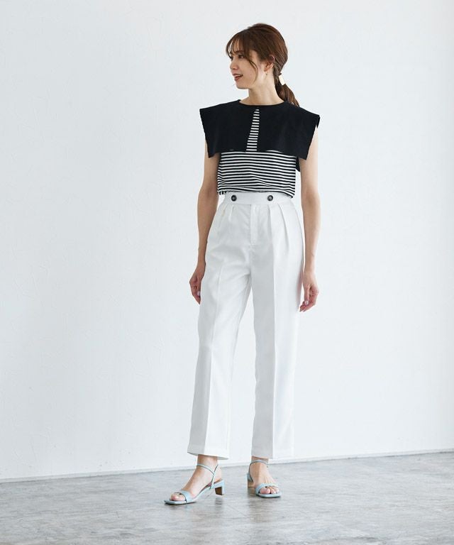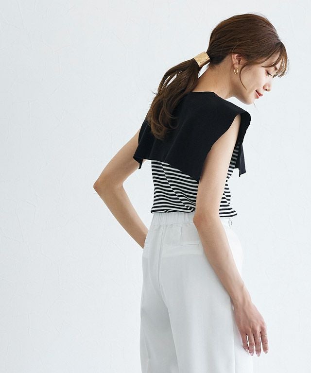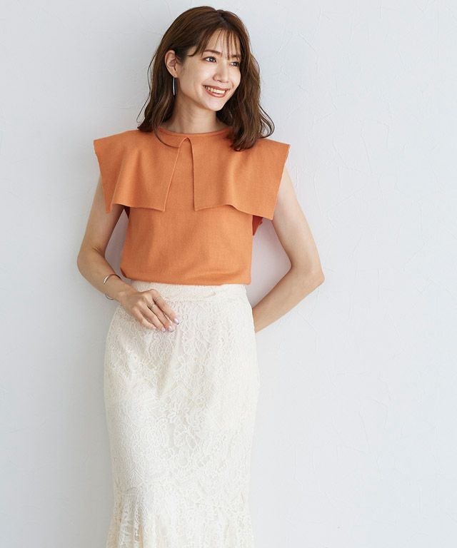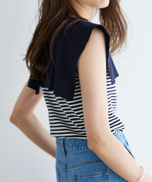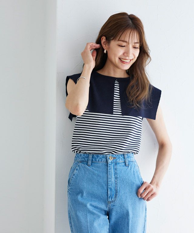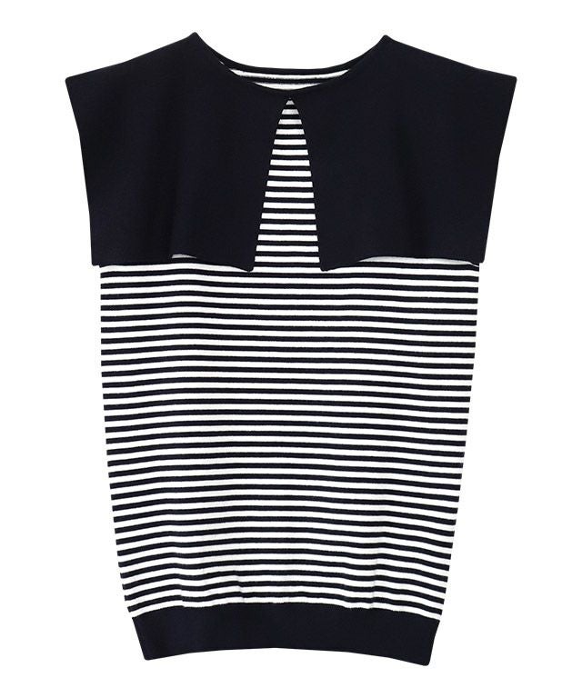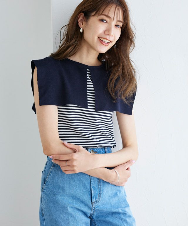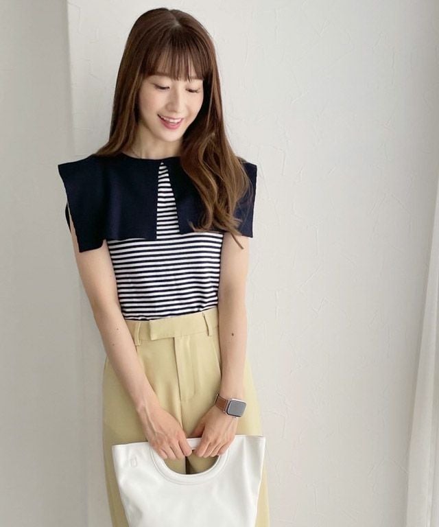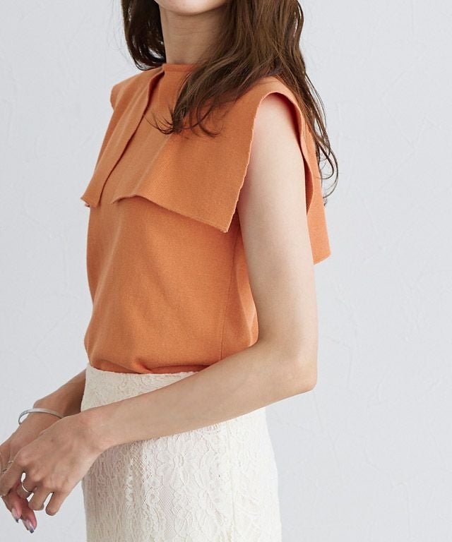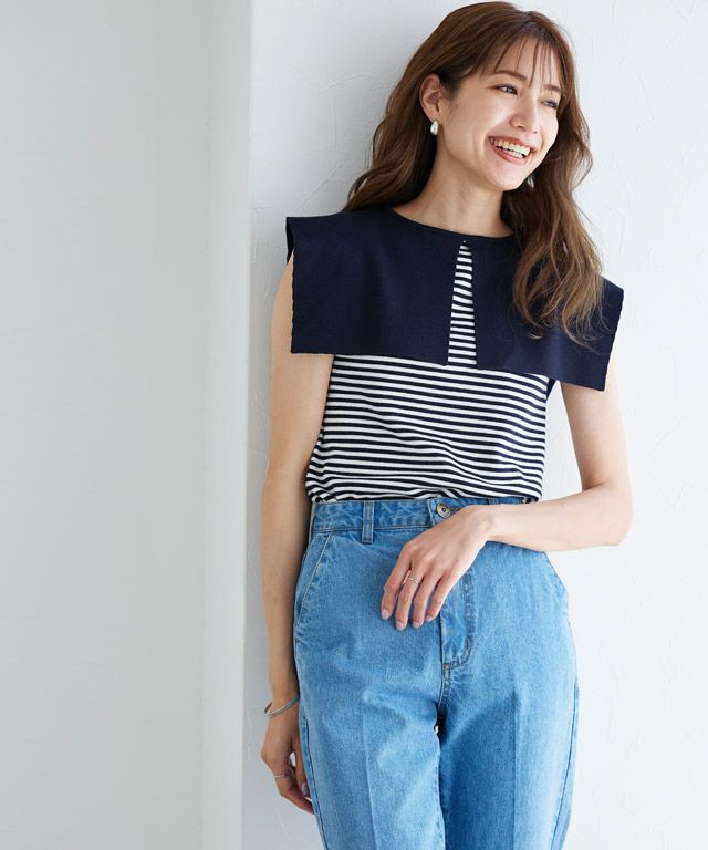 スタイリングのアクセントになる“ セーラーカラーノースリーブニット”