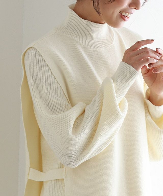 いろんな着回しを楽しめる“ハイネックベスト×パフスリーブニットセット”