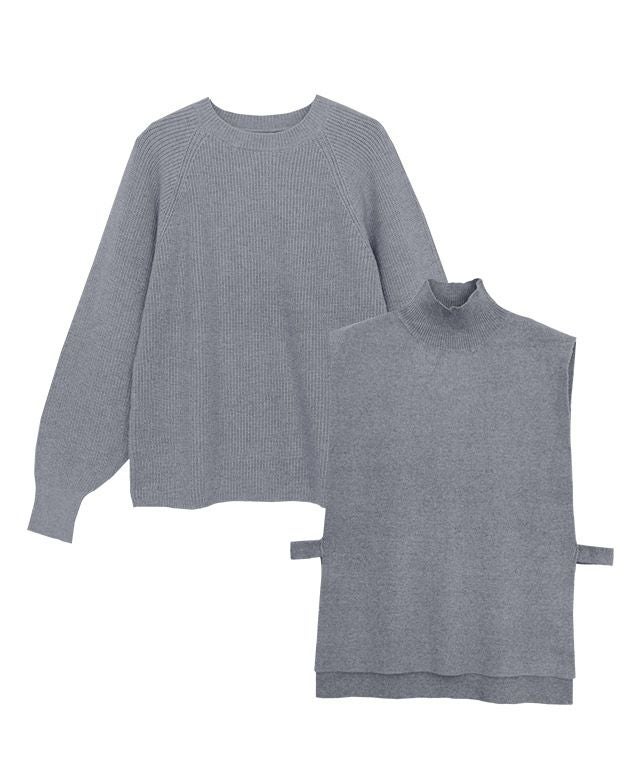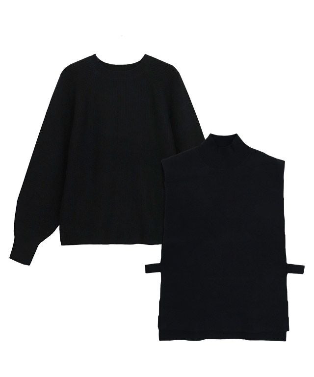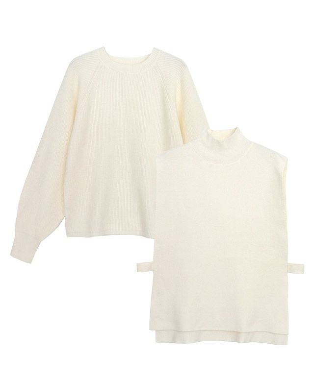 【アウトレットSALE!】ハイネックベスト×パフスリーブニットセット【スピード配送】