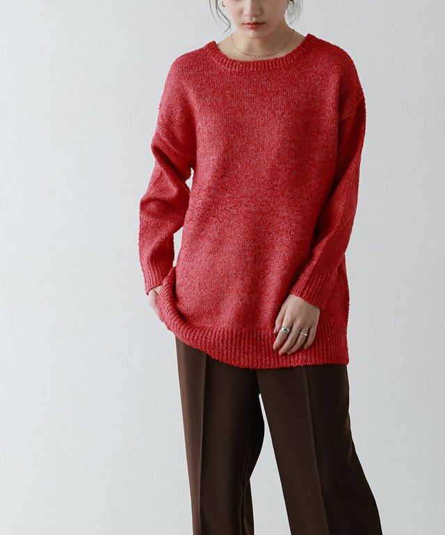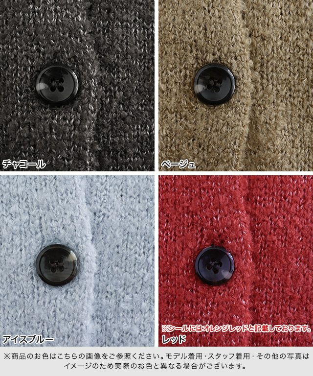 また、ニット製品は生産の過程上「生地を織る際の糸の継ぎ目」繊維の「混紡」、プレス加工、製品洗い加工によって形やサイズ(5cm前後)に誤差が生じる場合がございますが品質上の問題はございません。