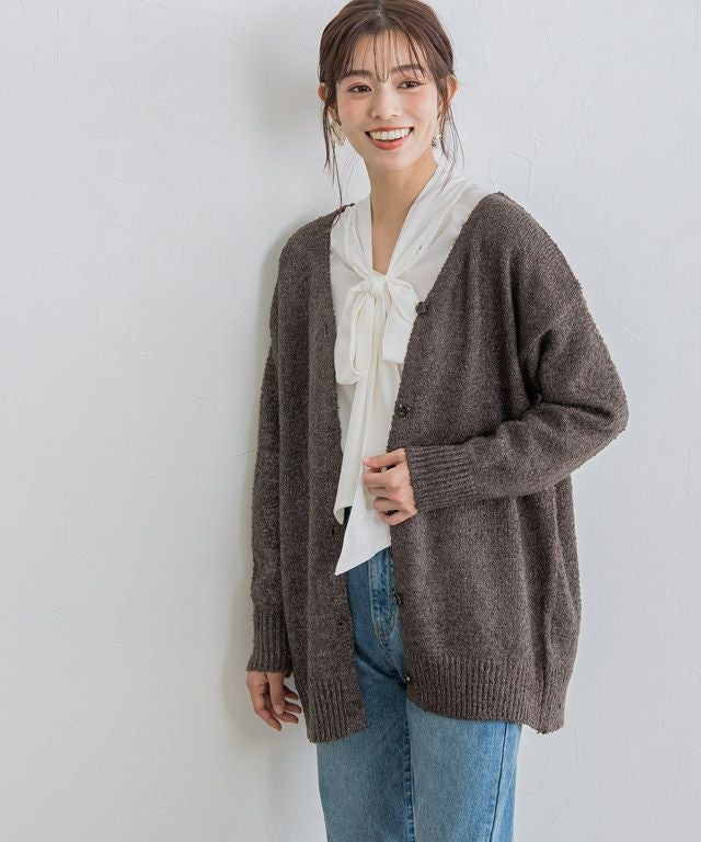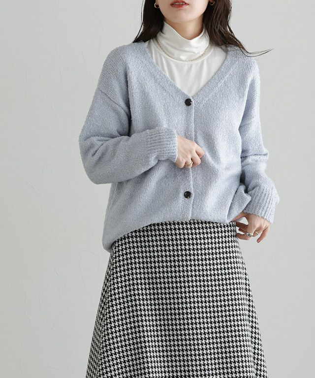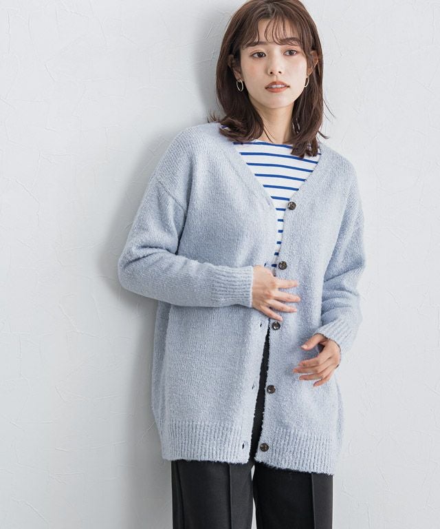 ふんわり柔らかなブークレ素材が特徴のカーディガン。