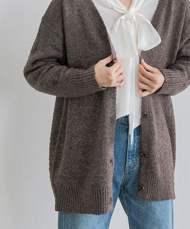 2wayブークレVネックカーディガン【スピード配送】