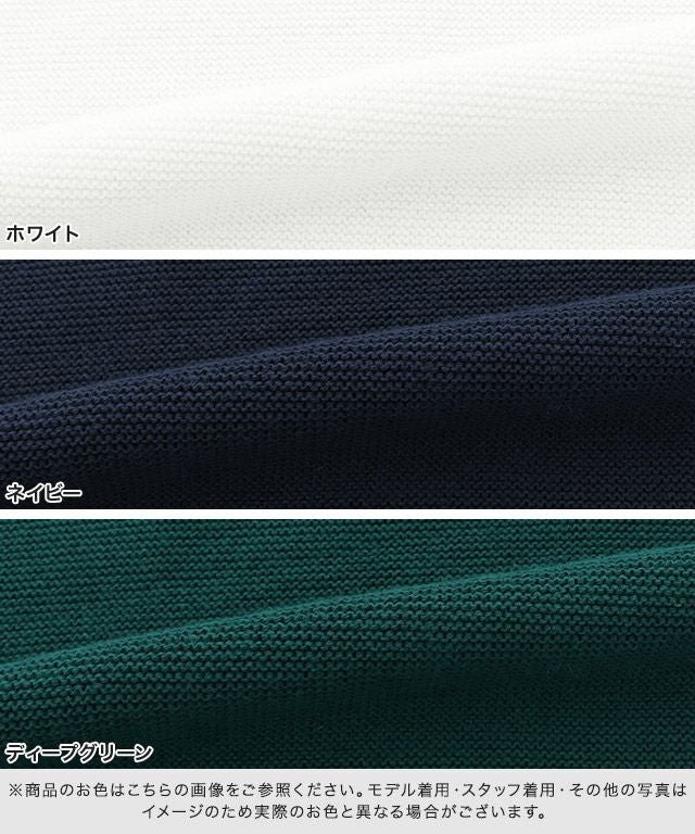 また、ニット製品は生産の過程上「生地を織る際の糸の継ぎ目」繊維の「混紡」、プレス加工、製品洗い加工によって形やサイズ(5cm前後)に誤差が生じる場合がございますが品質上の問題はございません。