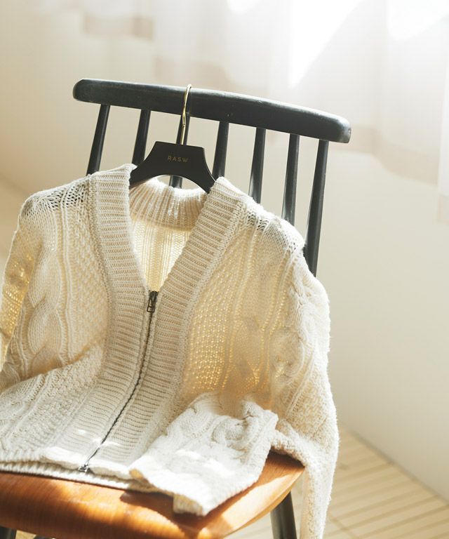 [RASW]ウール混ケーブルジップカーディガン 【スピード配送】