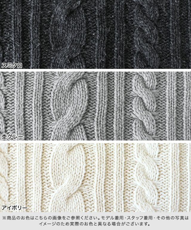 また、ニット製品は生産の過程上「生地を織る際の糸の継ぎ目」繊維の「混紡」、プレス加工、製品洗い加工によって形やサイズ(5cm前後)に誤差が生じる場合がございますが品質上の問題はございません。