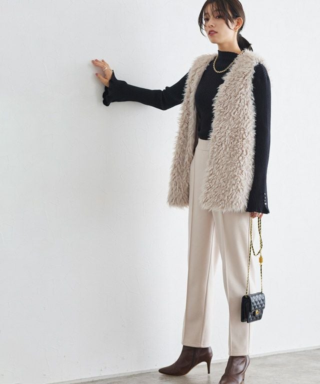 また、ニット製品は生産の過程上「生地を織る際の糸の継ぎ目」繊維の「混紡」、プレス加工、製品洗い加工によって形やサイズ(5cm前後)に誤差が生じる場合がございますが品質上の問題はございません。