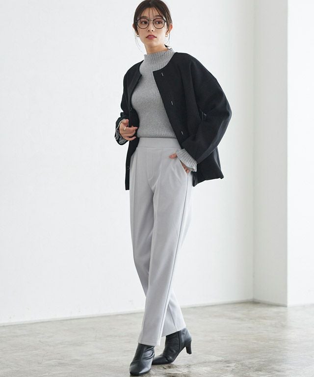 肌に吸い付くようなもっちり滑らかな風合いで心地良い生地感。リブ編みにすることで程良く厚みを出し、より伸縮性に優れた風合いに仕上げました。