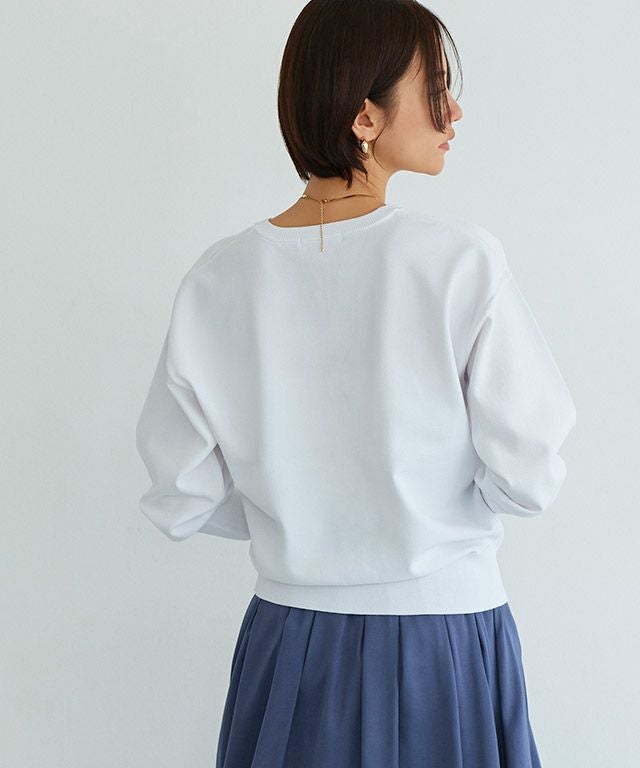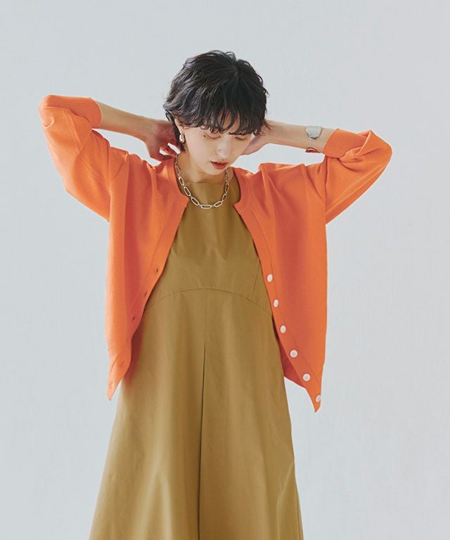 「接触冷感・毛玉防止・ウォッシャブル」の3つの機能を持ち合わせた素材でデイリー使いしやすい定番アイテム。滑らかな表面感と程よくハリのある素材は大人っぽく上品な印象を与えます。レーヨン混で肌触りも良く快適な着心地です。