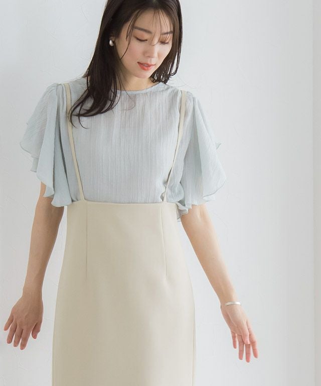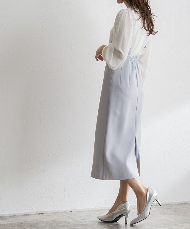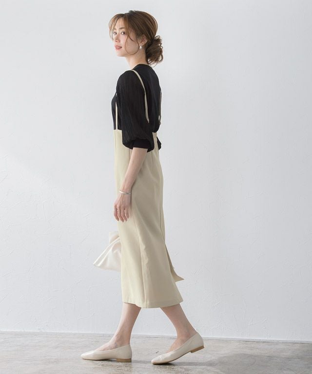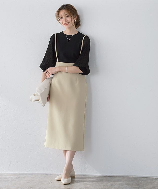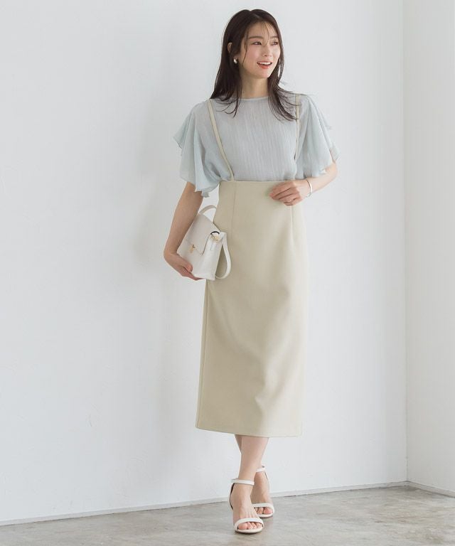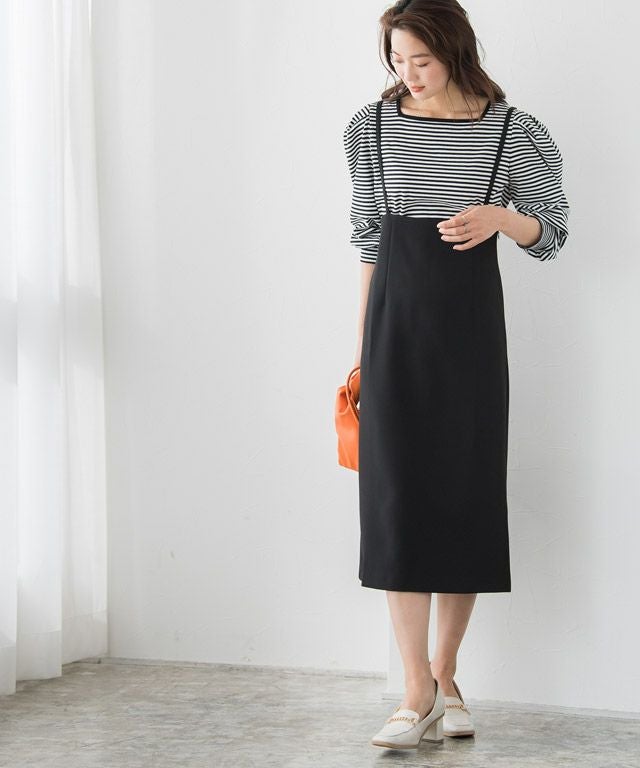 女性らしい印象に導く“ショルダーストラップサロペットスカート”