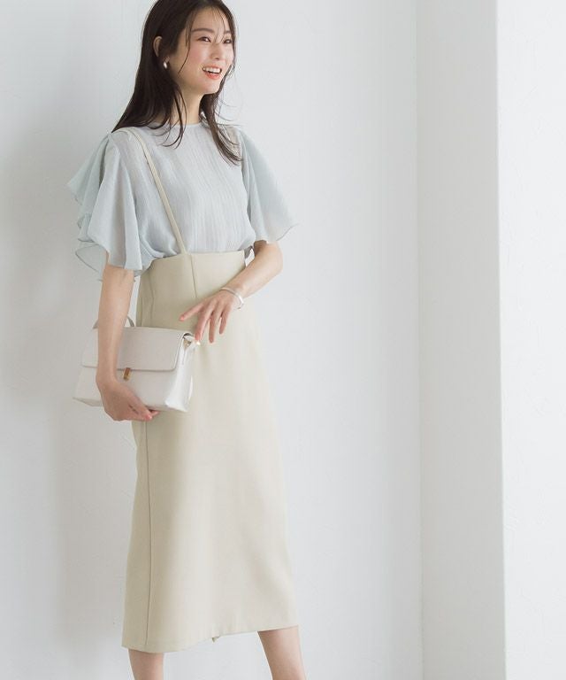 厚手のジョーゼット素材を使用しており、滑らかな肌触りと程よい落ち感が魅力的できちんとした印象をプラスします。