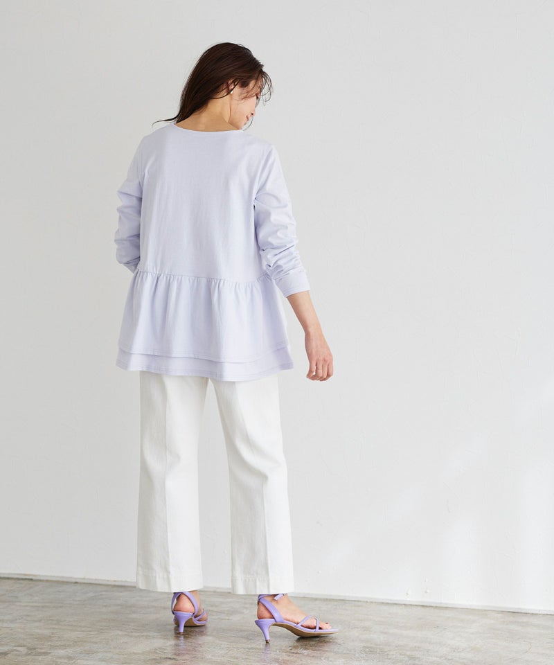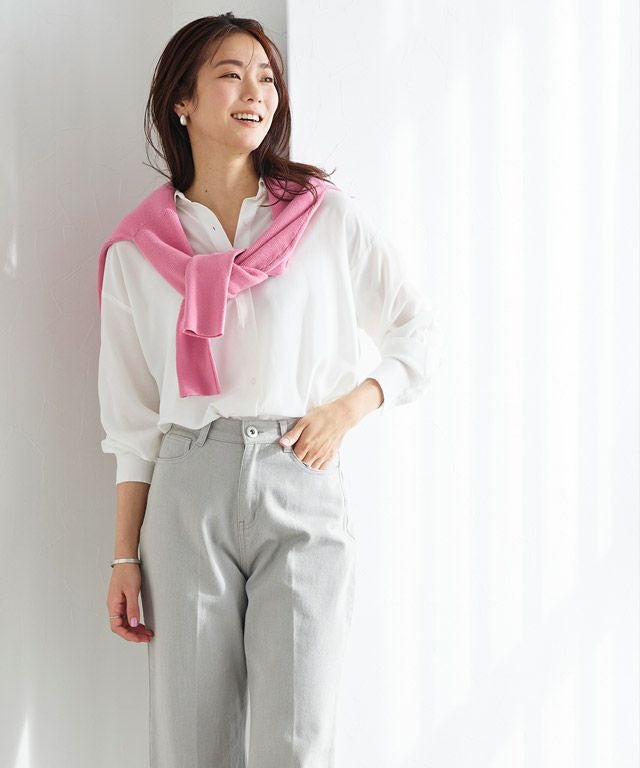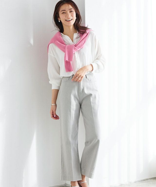 デニムのような風合いが特徴のカツラギ素材を使用。柔らかい素材でありながら程よくハリ感があるため、シルエットをキープしつつも穿きやすい一枚です。