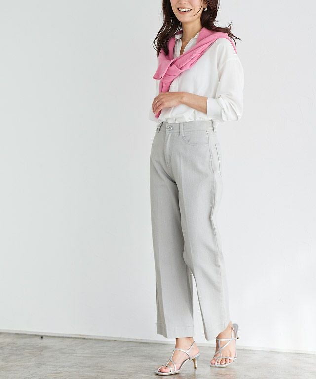 女性らしいシルエット“ストレートツイルパンツ”